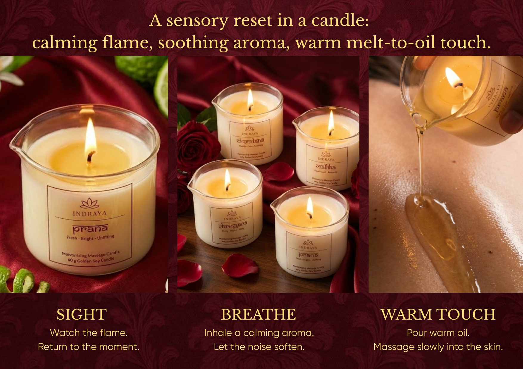 We create sensory rituals inspired by Indian wisdom and modern psychology, made to help you slow down, ease mental noise, and feel yourself again.